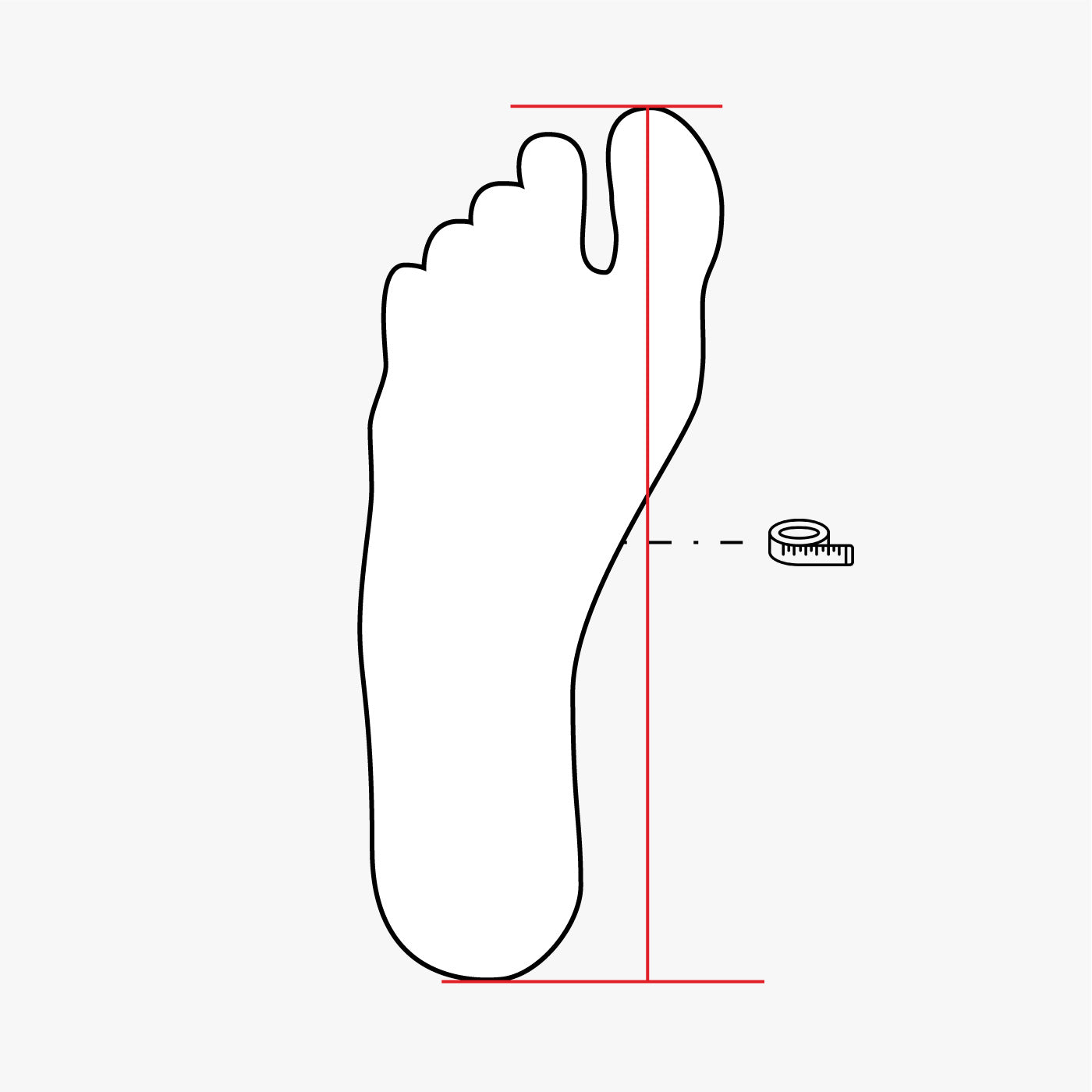 Pour mesurer la longueur de ton pied, place ton pied sur une feuille de papier avec le talon contre un mur. Marque le point le plus long de ton pied, qui est généralement le gros orteil, puis mesure la distance de ce point jusqu'au mur.