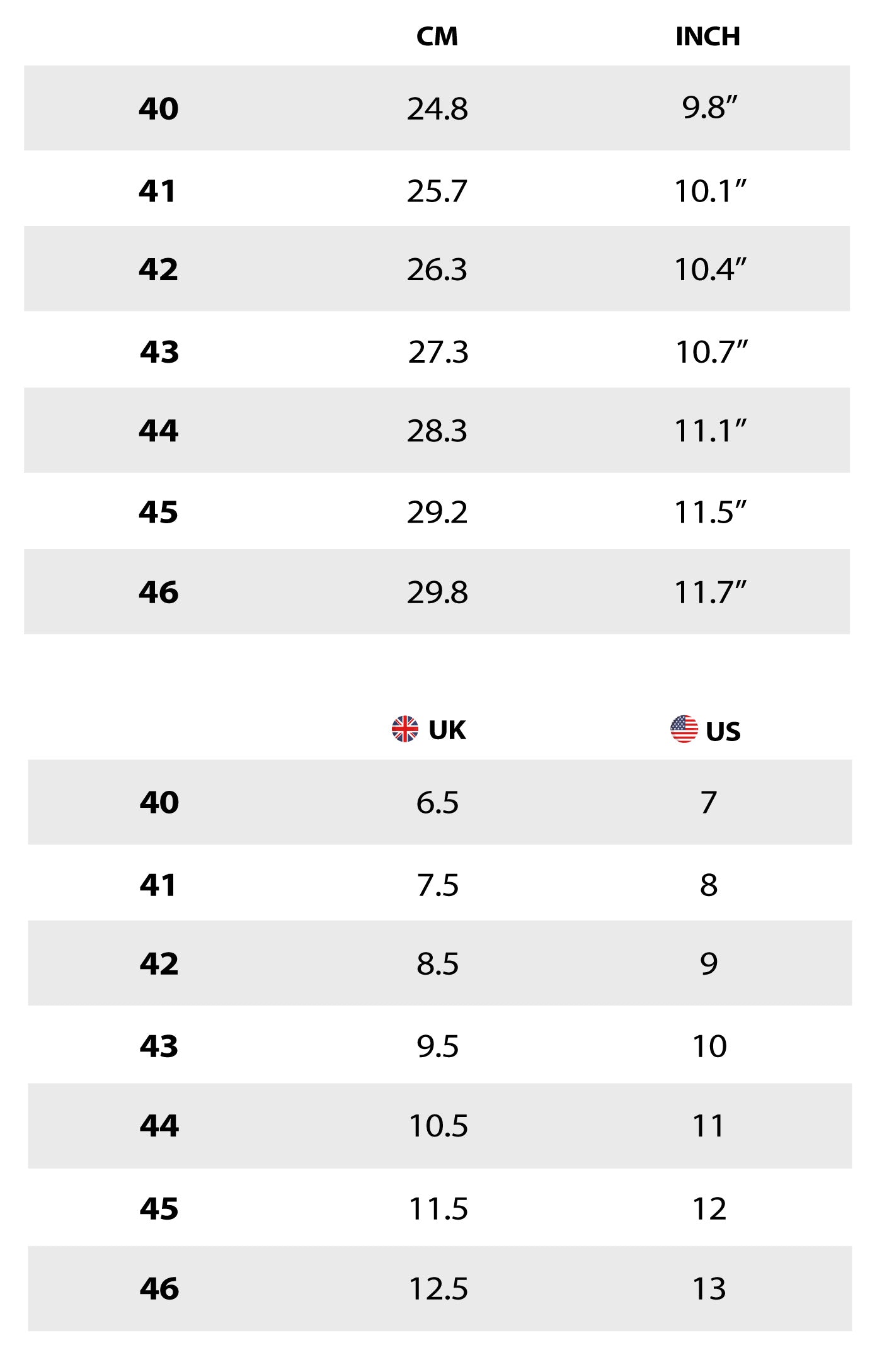 Ce guide des tailles est pour toutes les chaussures pour hommes, y compris les baskets, les tongs de plage et les espadrilles.