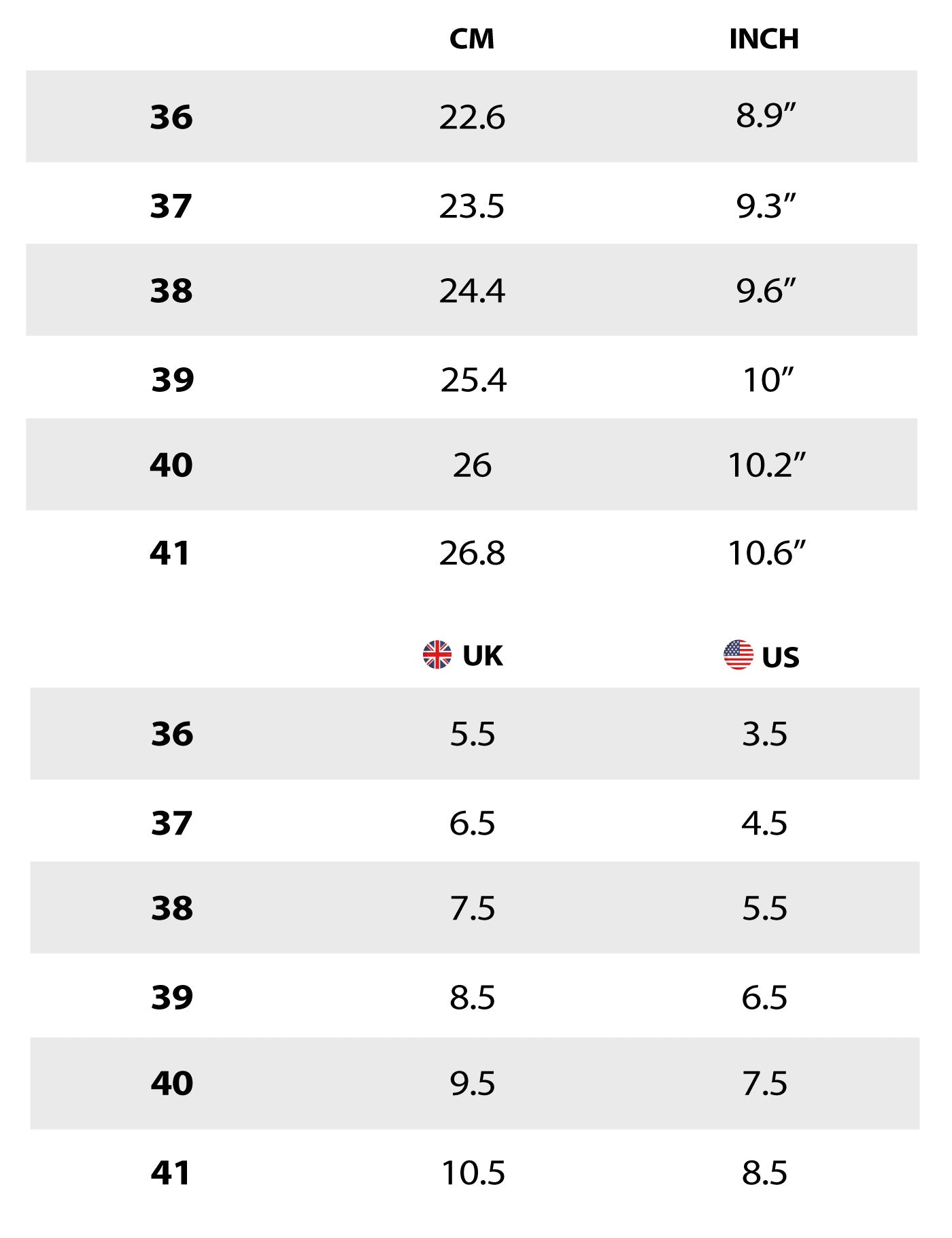 Ce guide des tailles est pour toutes les chaussures pour femmes, y compris les baskets et les tongs de plage.