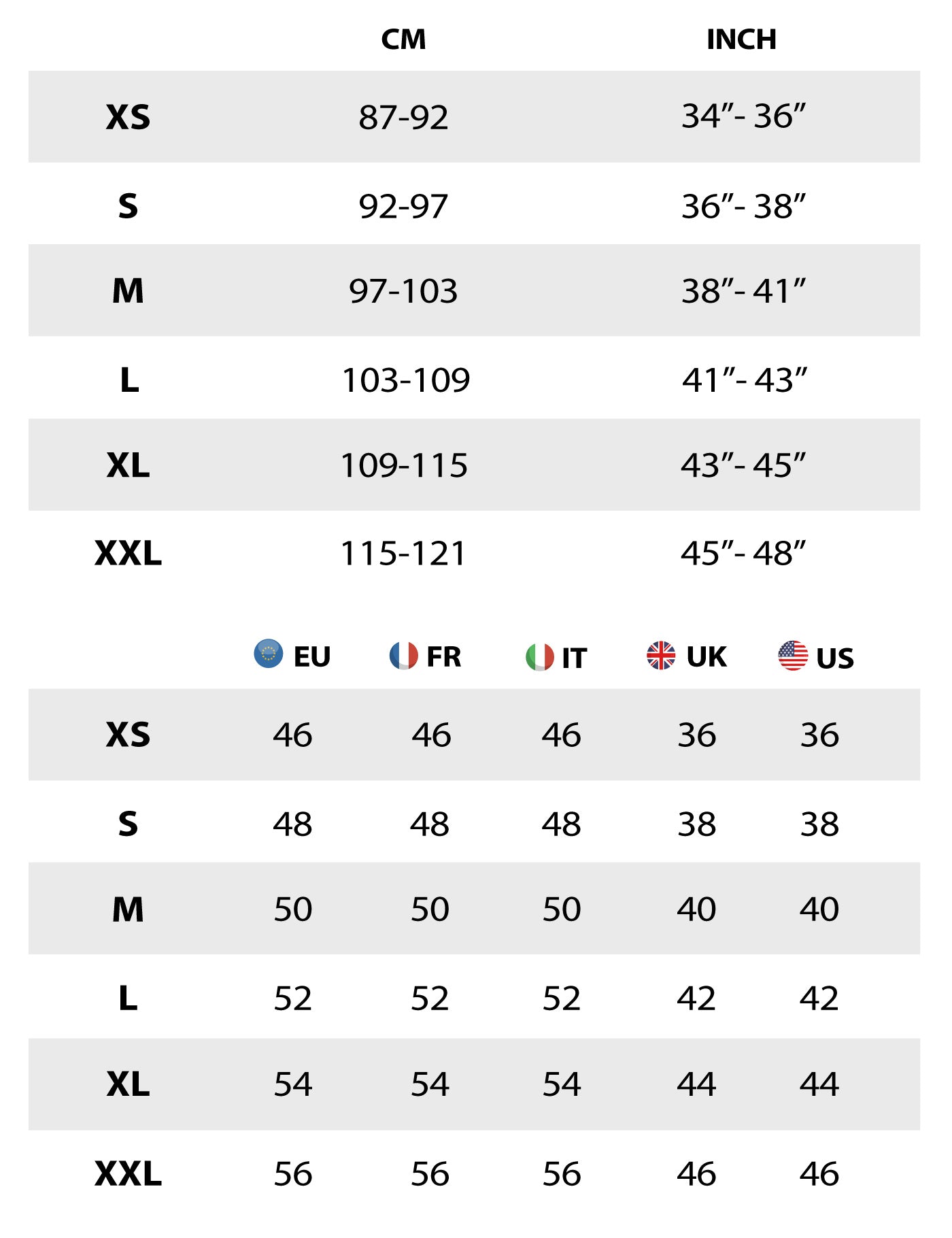 Ce guide des tailles se réfère au corps du client et non au produit.
