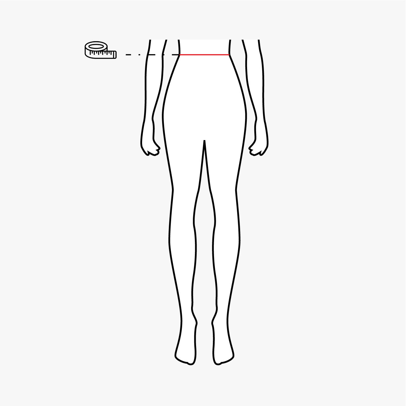 Mesure ta taille à son point le plus étroit. Trouve le point au-dessus du nombril et en dessous des côtes et passe le ruban à mesurer autour, sans trop serrer.
