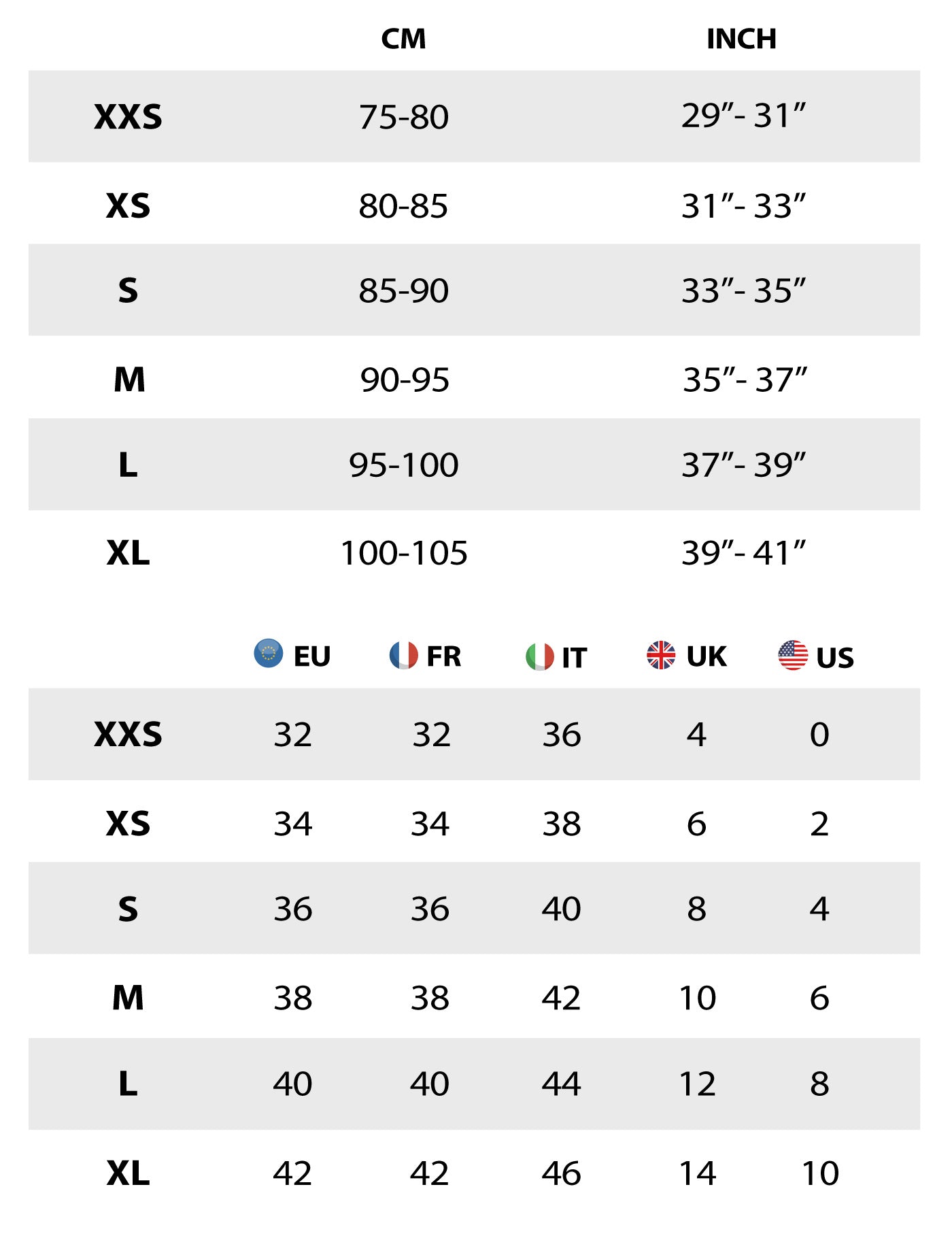 Ce guide des tailles est pour tous les bas pour femmes, y compris les jeans, pantalons, shorts, joggers, leggings et jupes.