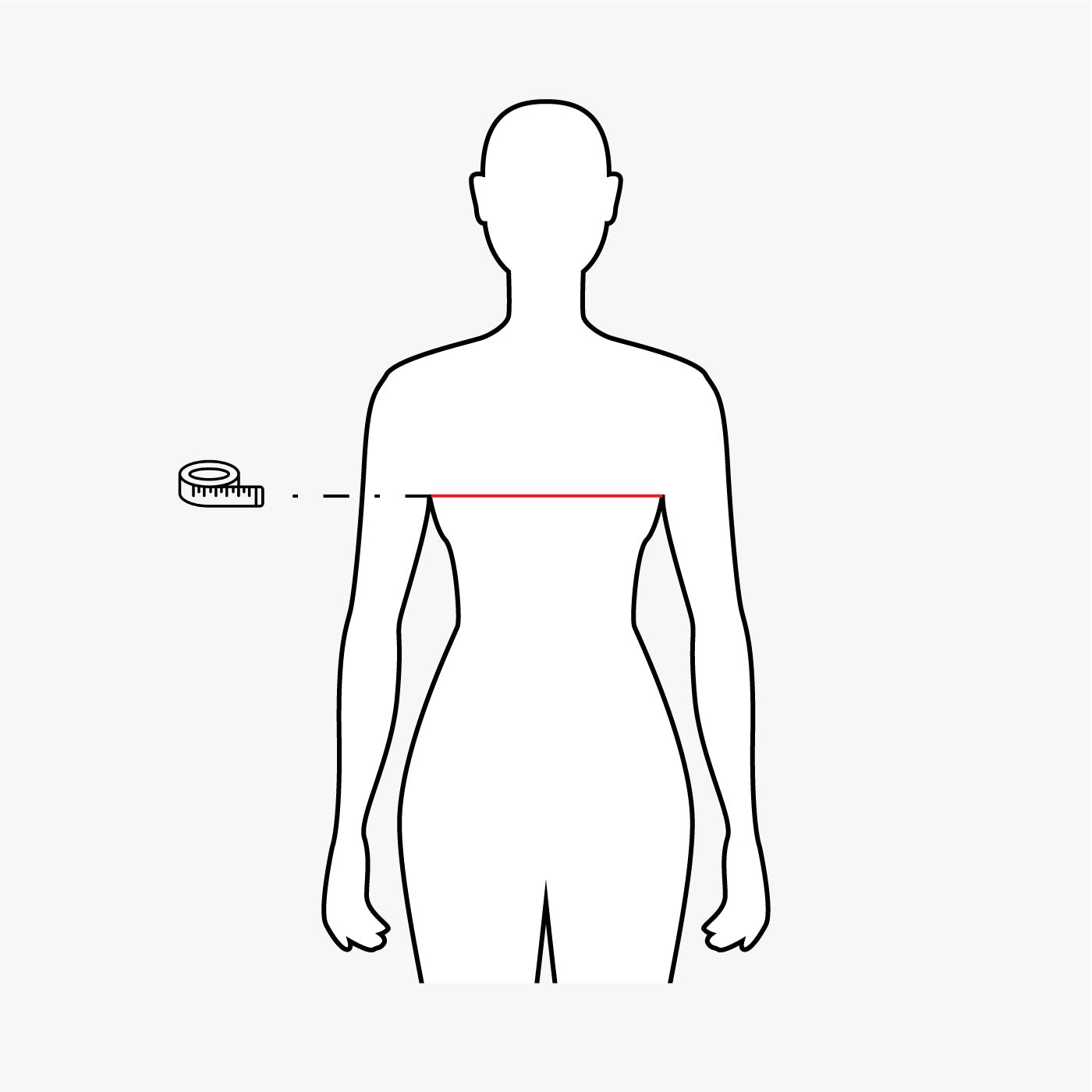 Mesure la partie la plus large de ta poitrine, juste en dessous des bras, en t'assurant que le ruban à mesurer est horizontal et bien ajusté, mais sans serrer.