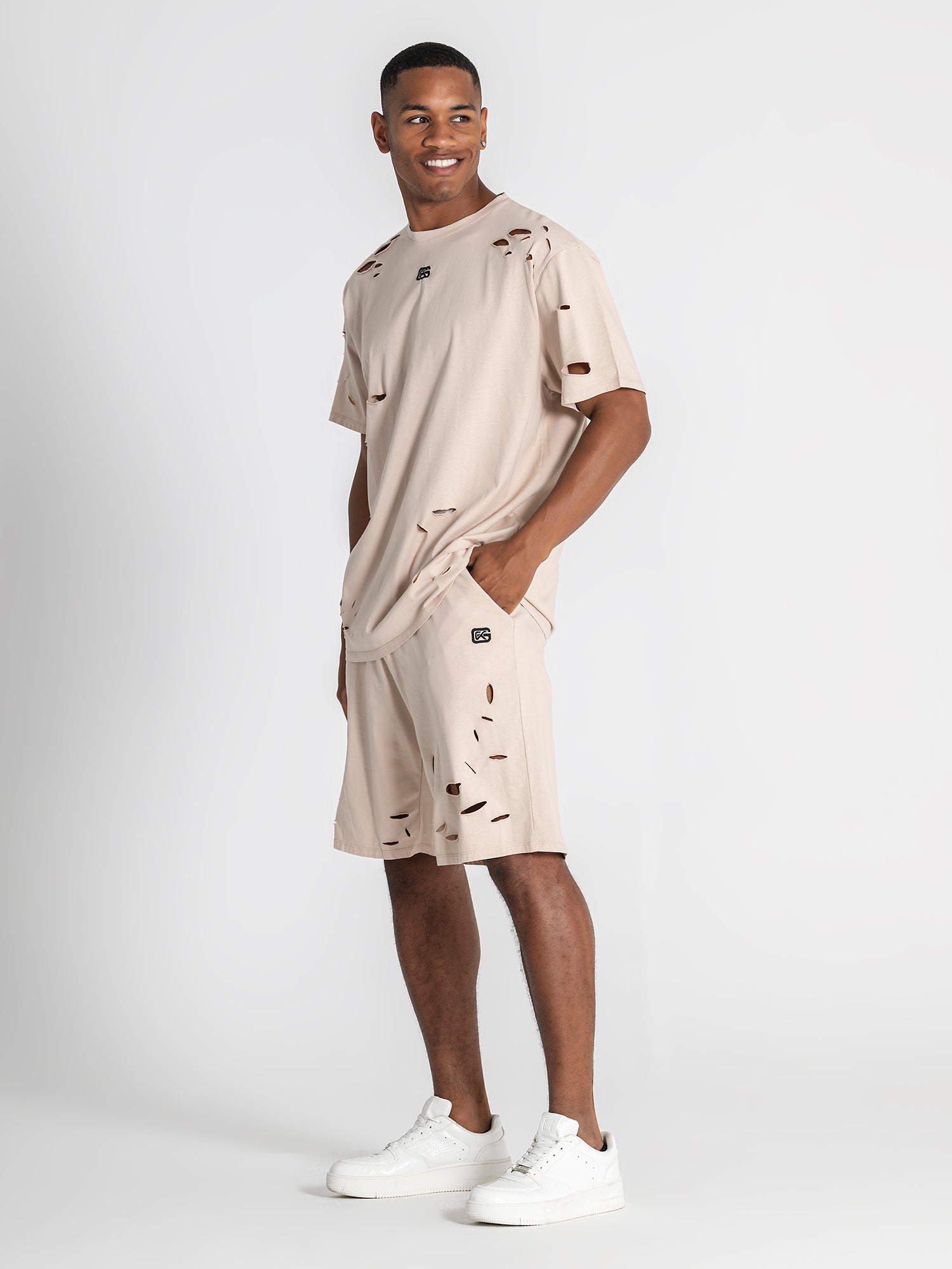 Beige Ripped Oversized Tee